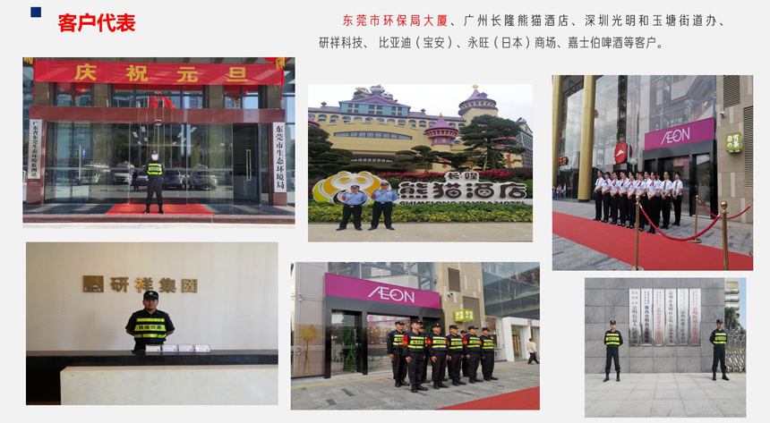 主要客戶單位有:研祥集團、長隆熊貓酒店、京泉華集團、新東方學校、深圳市中山大學科研樓、中建三局、中建四局、中建五局、大世界油墨、西普珠寶、 日本御田二、世界500強企業(yè)ABB、 光浩國際大廈、 四維股份、香港電力、汕頭大學、 芒果大廈 、金山陶瓷、南粵通集團、 冠粵路橋集團、港之龍實業(yè)、 嘉士伯啤酒、郎盈公司、科創(chuàng)股份、潤星股份、 兆邦基集團、58同城、公明街道辦、玉塘街道辦、光啟股份、深圳柔宇顯示技術(shù)有限公司、深圳光啟融匯創(chuàng)新技術(shù)有限公司、永旺超市、盛城和記房地產(chǎn)開發(fā)有限公司、長城物業(yè)、京基房地產(chǎn)物業(yè)、戴德梁行、聯(lián)建物業(yè)管理有限公司、鯉魚門投資發(fā)展有限公司等等企業(yè)。公司等社會知名企事業(yè)單位,贏得了政府、客戶和社會各界的高度贊揚。